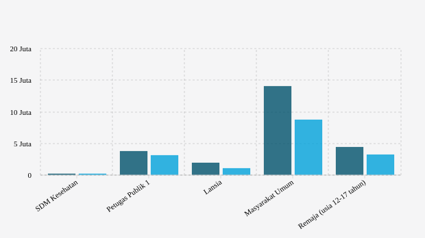 Vaksinasi ke petugas publik dengan target 2,2 juta jiwa. Vaksinasi dosis 1 dilaporkan telah mencapai 3,73 juta jiwa (170,09 persen target) dan dosis 2 dengan capaian 144,07 persen atau berhasil tersalurkan sebanyak 3,16 juta jiwa.