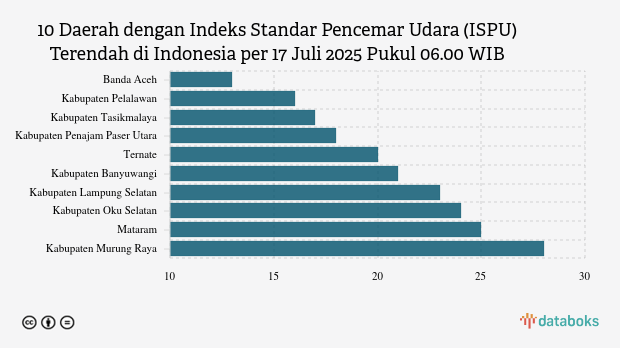 Berikut daftar lengkap 10 kota dengan kualitas udara paling bersih di Indonesia menurut KLHK pada Kamis, 17 Juli 2025 pukul 06.00 WIB.