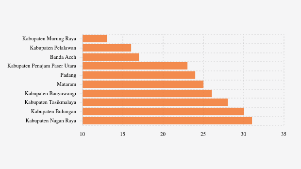 - Kabupaten Bulungan (Kalimantan Utara): 30