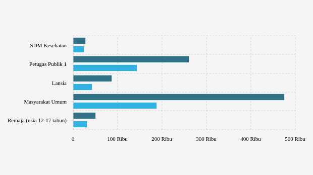 Vaksinasi ke masyarakat umum yang rentan ditargetkan sebanyak 1.36 juta jiwa. Pada dosis 1, vaksinasi dilaporkan telah diberikan sebanyak 475,37 ribu jiwa (35 persen target). Sedangkan untuk vaksinasi dosis 2 baru tercapai 13,85 persen atau 188,03 ribu jiwa.