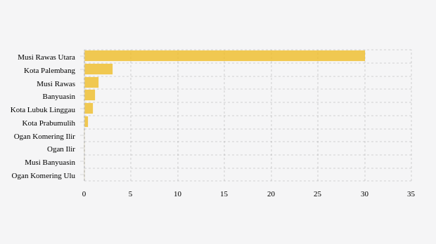 Banyuasin dan kota Lubuk Linggau berada di posisi selanjutnya dengan catatan BOR sebesar 1,13 persen dan 0,87 persen.