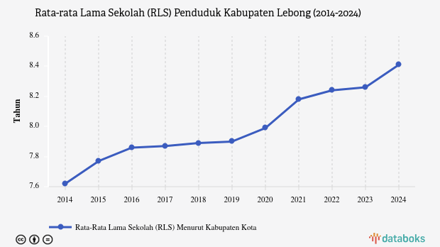 Rata-rata lama sekolah (RLS) penduduk berusia 25 tahun ke atas di Lebong, Bengkulu mencapai 8,41 tahun pada 2024.