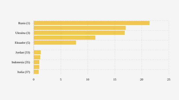 Selanjutnya, penambahan kasus Omicron di Ukraina naik 16,83 persen menjadi 465 kasus dibandingkan pekan sebelumnya, penambahan kasus Omicron di Islandia naik 11,37 persen menjadi 1.322 kasus dibandingkan pekan sebelumnya dan Ekuador dengan penambahan kasus Omicron 3.620 kasus (naik 7,83%)