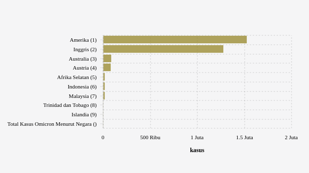 Setelahnya Inggris di urutan kedua. Dibandingkan pekan sebelumnya, jumlah kasus Omicron di negara ini tumbuh 0,7 persen. Sedangkan untuk data harian angka jumlah kasus Omicron di negara ini naik 0,02 persen dibanding hari sebelumnya yang tercatat 1,27 juta jiwa.