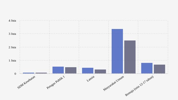 Vaksinasi ke masyarakat umum yang rentan ditargetkan sebanyak 4,37 juta jiwa. Pada dosis 1, vaksinasi dilaporkan telah diberikan sebanyak 3,35 juta jiwa (77,45 persen target). Sedangkan untuk vaksinasi dosis 2 baru tercapai 57,75 persen atau 2,49 juta jiwa.