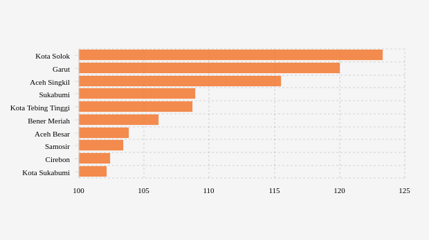 Vaksinasi lansia lima kabupaten/kota teratas dengan angka lebih dari 108,69 persen, yaitu kota Solok, Garut, Aceh Singkil, Sukabumi dan kota Tebing Tinggi dengan masing-masing nilai 123,28 persen, 119,95 persen, 115,52 persen, 108,89 persen dan 108,69 persen.