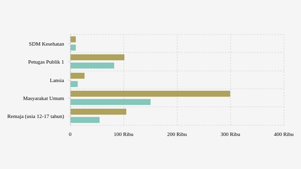 Vaksinasi ke masyarakat umum yang rentan ditargetkan sebanyak 620,79 ribu jiwa. Pada dosis 1, vaksinasi dilaporkan telah diberikan sebanyak 298,67 ribu jiwa (48,11 persen target). Sedangkan untuk vaksinasi dosis 2 baru tercapai 24,12 persen atau 149,76 ribu jiwa.