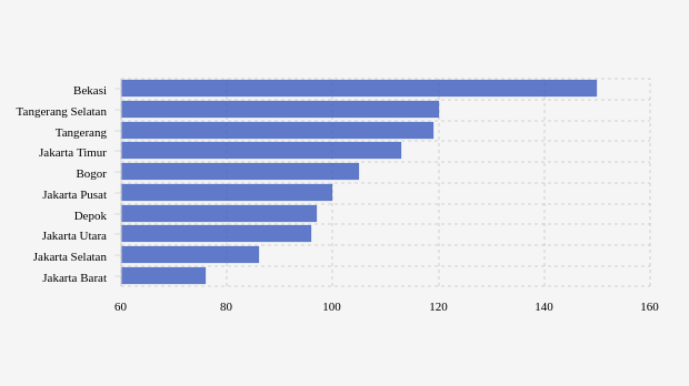 Ini menunjukkan bahwa kota-kota di Jabodetabek seperti Bekasi, Tangerang Selatan, dan Tangerang memiliki kualitas udara tidak sehat.
