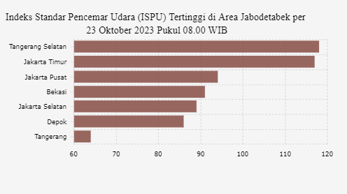 Ini menunjukkan bahwa kota-kota di Jabodetabek seperti dan Tangerang Selatan dan Jakarta Timur memiliki kualitas udara tidak sehat.