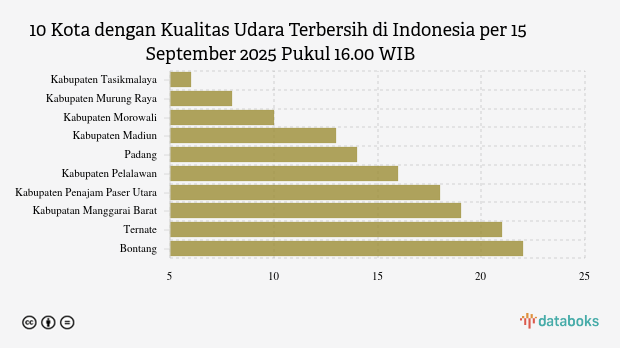 Berikut daftar lengkap 10 kota dengan kualitas udara paling bersih di Indonesia menurut KLHK pada Senin, 15 September 2025 pukul 16.00 WIB.