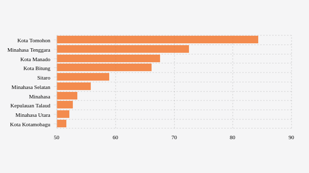 Urutan selanjutnya ditempati Minahasa Tenggara dan kota Manado yang masing-masing dengan catatan cakupan vaksinasi lansia sebesar 72,55 persen dan 67,57 persen