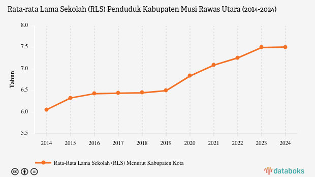 RLS tersebut menunjukkan rata-rata penduduk Musi Rawas Utara hanya sekolah sampai jenjang kelas VII. Namun, RLS itu masih di bawah rata-rata RLS nasional yang 8,85 tahun pada 2024.