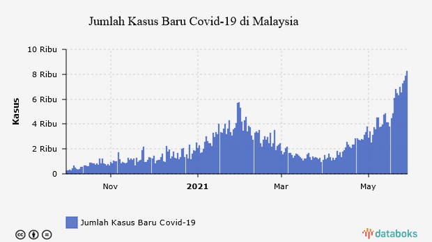 Malaysia kembali mengalami lonjakan kasus virus corona Covid-19. Tambahan kasus corona di Negeri Jiran tercatat sebesar 8.290 kasus pada Jumat, 28 Mei 2021, menjadi yang tertinggi sepanjang pandemi berlangsung. Pertambahan kasus corona tersebut juga menjadi yang tertinggi di Asia Tenggara.