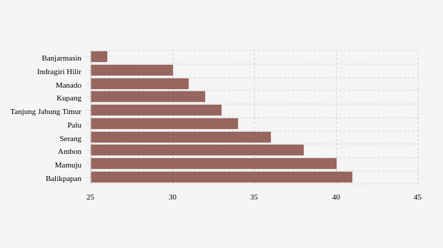 - Banjarmasin (Kalimantan Selatan): 26