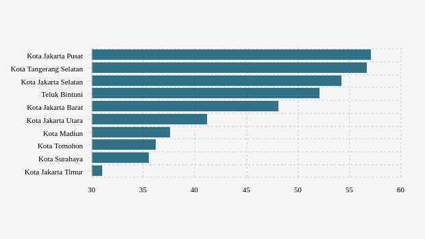 Konfirmasi positif lima kabupaten/kota teratas dengan angka lebih dari 48,08 jiwa per 100 ribu penduduk/minggu, yaitu kota Jakarta Pusat, kota Tangerang Selatan, kota Jakarta Selatan, Teluk Bintuni dan kota Jakarta Barat dengan masing-masing nilai 57,13 jiwa per 100 ribu penduduk/minggu, 56,74 jiwa per 100 ribu penduduk/minggu, 54,17 jiwa per 100 ribu penduduk/minggu, 52,07 jiwa per 100 ribu penduduk/minggu dan 48,08 jiwa per 100 ribu penduduk/minggu.