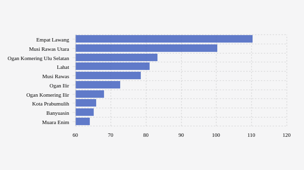 Urutan selanjutnya ditempati Musi Rawas Utara dan Ogan Komering Ulu Selatan yang masing-masing dengan catatan cakupan vaksinasi 1 lansia sebesar 100,16 persen dan 83,21 persen.