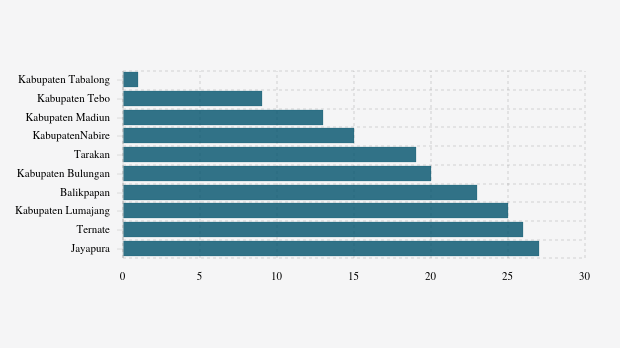 - Kabupaten Bulungan (Kalimantan Utara): 20
