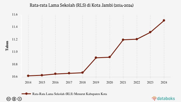 RLS tersebut menunjukkan rata-rata penduduk Kota Jambi hanya sekolah sampai jenjang kelas XI. RLS itu lebih baik dari rata-rata RLS nasional yang 8,85 tahun pada 2024.