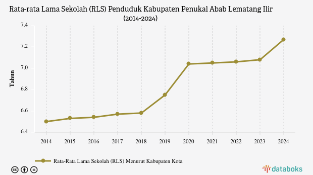 Rata-rata lama sekolah (RLS) penduduk berusia 25 tahun ke atas di Penukal Abab Lematang Ilir, Sumatera Selatan mencapai 7,27 tahun pada 2024.
