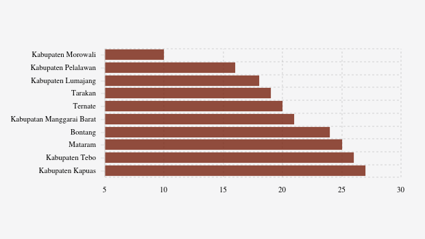 - Kabupaten Morowali (Sulawesi Tengah): 10