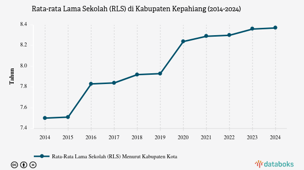 Rata-rata lama sekolah (RLS) penduduk berusia 25 tahun ke atas di Kepahiang, Bengkulu mencapai 8,37 tahun pada 2024.