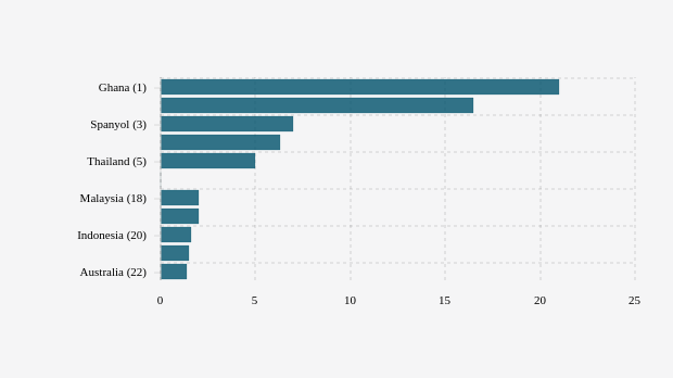Kemudian, penambahan kasus Omicron di Spanyol naik 7,01 persen menjadi 87.903 kasus dibandingkan pekan sebelumnya, penambahan kasus Omicron di Brunei Darussalam naik 6,32 persen menjadi 4.036 kasus dibandingkan pekan sebelumnya dan Thailand dengan penambahan kasus Omicron 22.036 kasus (naik 5,04%)