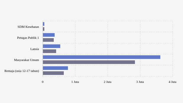 Vaksinasi ke masyarakat umum yang rentan ditargetkan sebanyak 4,62 juta jiwa. Pada dosis 1, vaksinasi dilaporkan telah diberikan sebanyak 3,62 juta jiwa (79,19 persen target). Sedangkan untuk vaksinasi dosis 2 baru tercapai 62,26 persen atau 2,84 juta jiwa.