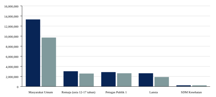 Vaksinasi ke masyarakat umum yang rentan ditargetkan sebanyak 19,3 juta jiwa. Pada dosis 1, vaksinasi dilaporkan telah diberikan sebanyak 13,29 juta jiwa (69,09 persen target). Sedangkan untuk vaksinasi dosis 2 baru tercapai 50,61 persen atau 9,73 juta jiwa.
