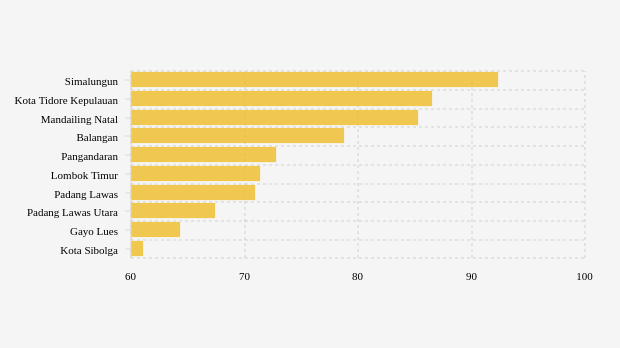 Kemudian, Mandailing Natal mencatatkan pemeriksaan 85,31 persen, pemeriksaan sebanyak 78,77 persen di Balangan serta pemeriksaan sebanyak 72,76 persen di Pangandaran.
