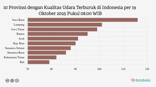 Berikut daftar 10 provinsi dengan indeks kualitas udara terburuk di Indonesia pada Minggu, 19 Oktober 2025 pukul 08.00 WIB.