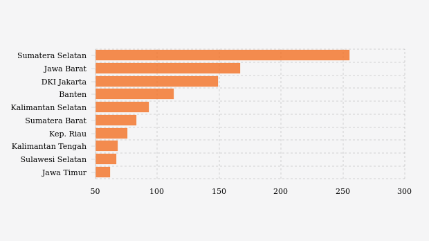 Ini artinya, Sumatera Selatan memiliki kualitas udara sangat tidak sehat.