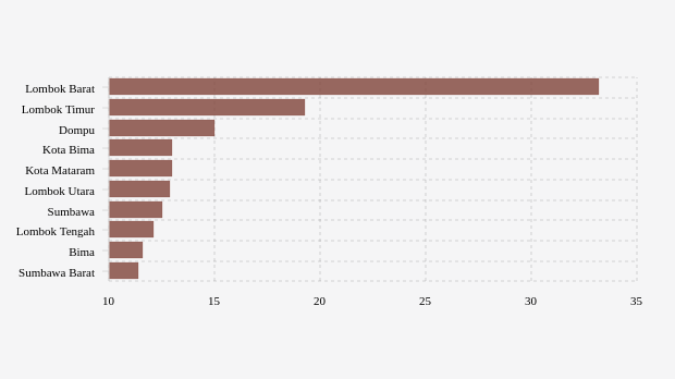 Lombok barat adalah kabupaten di urutan pertama dengan tracing tertinggi sebesar 33,18 persen. Kondisi tracing di kabupaten ini memperlihatkan ada kemajuan dengan adanya penurunan dibandingkan pekan sebelumnya yang tercatat 34,3 persen.