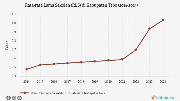 RLS tersebut menunjukkan rata-rata penduduk Tebo hanya sekolah sampai jenjang kelas VIII. Namun, RLS itu masih di bawah rata-rata RLS nasional yang 8,85 tahun pada 2024.