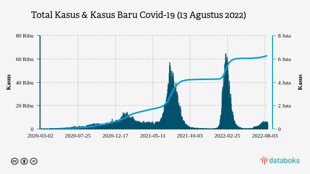 Pasien positif Covid-19 bertambah 5.104 orang per 13 Agustus 2022.