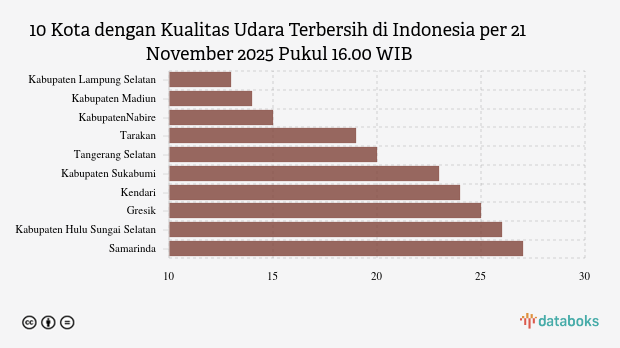Berikut daftar 10 provinsi dengan indeks kualitas udara terburuk di Indonesia pada Rabu, 12 November 2025 pukul 18.00 WIB.