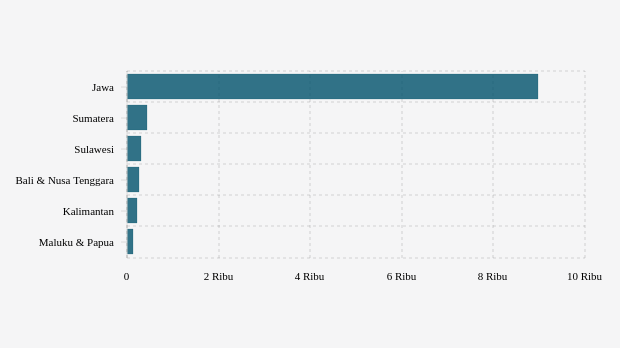 Wilayah Jawa masih mendominasi jumlah sekuens Covid-19 varian Omicron di Indonesia, yakni mencapai 8.963 sekuens. Jumlah ini setara 86,86% dari total sekuens Covid-19 varian Omicron di dalam negeri.