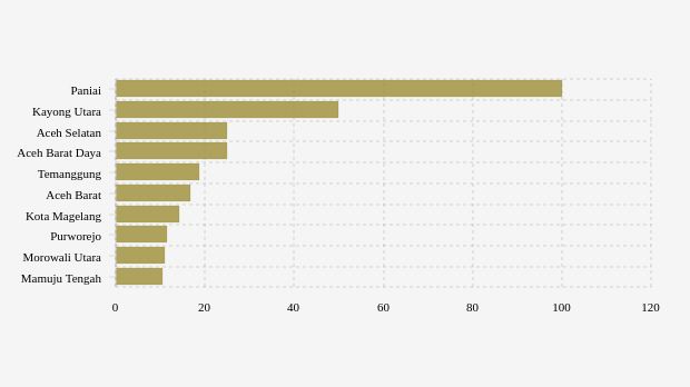 positivity rate tujuh hari terakhir lima kabupaten/kota teratas dengan angka lebih dari 18,75 persen, yaitu Paniai, Kayong Utara, Aceh Selatan, Aceh Barat Daya dan Temanggung dengan masing-masing nilai 100 persen, 50 persen, 25 persen, 25 persen dan 18,75 persen.