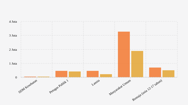 Vaksinasi ke masyarakat umum yang rentan ditargetkan sebanyak 4,62 juta jiwa. Pada dosis 1, vaksinasi dilaporkan telah diberikan sebanyak 3,28 juta jiwa (71,85 persen target). Sedangkan untuk vaksinasi dosis 2 baru tercapai 41,47 persen atau 1,88 juta jiwa.