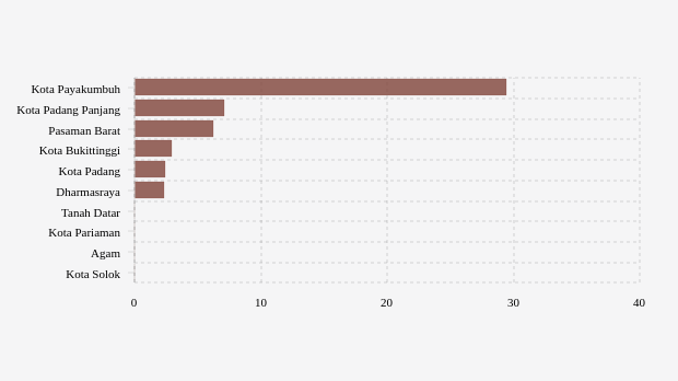 Kota payakumbuh berada di urutan pertama dengan BOR aglomerasi mingguan tertinggi sebesar 29,37 persen. Kondisi BOR aglomerasi mingguan di kota ini terlihat belum membaik karena terjadi peningkatan dibandingkan pekan sebelumnya yang tercatat 20,47 persen.