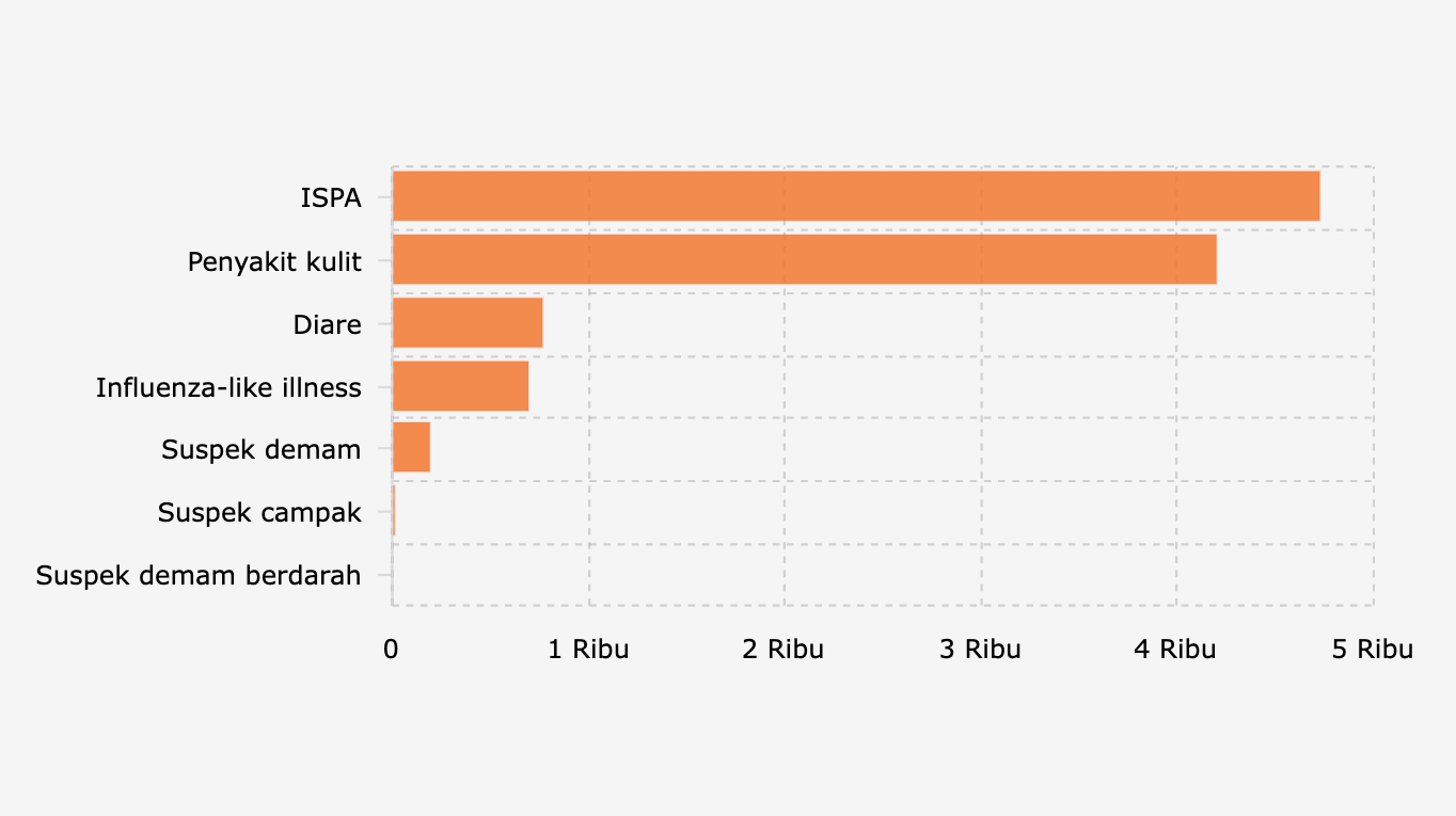 Sampai 10 Desember 2025, penyakit pasca-bencana yang paling banyak ditemukan di Sumatera Utara adalah penyakit kulit, infeksi saluran pernapasan akut (ISPA), diare, dan influenza-like illness (ILI).