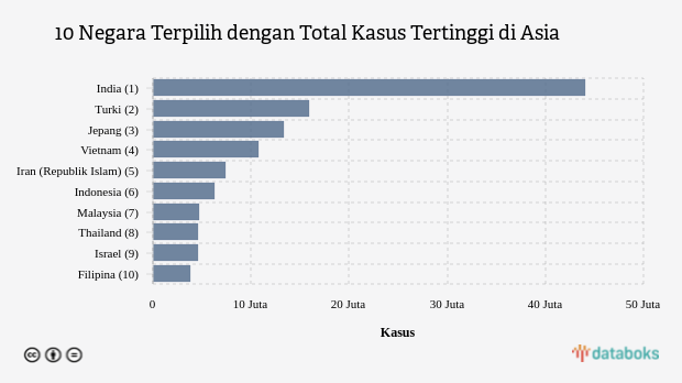 Total Kasus Covid-19 Indonesia Urutan Ke-6 di Asia