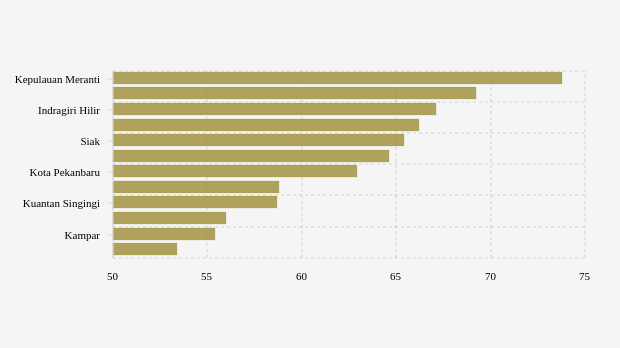 Kepulauan meranti adalah kabupaten di urutan pertama dengan cakupan vaksinasi lansia tertinggi sebesar 73,84 persen. Kondisi cakupan vaksinasi lansia di kabupaten ini terlihat lebih baik dibandingkan pekan sebelumnya yang tercatat 73,71 persen.