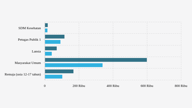 Vaksinasi ke petugas publik dengan target 174,71 ribu jiwa. Vaksinasi dosis 1 dilaporkan telah mencapai 114,2 ribu jiwa (65,37 persen target) dan dosis 2 dengan capaian 52,27 persen atau berhasil tersalurkan sebanyak 91,32 ribu jiwa.