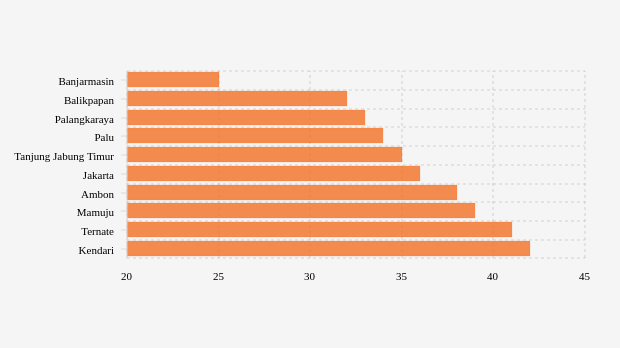 Pada waktu tersebut, kualitas udara Banjarmasin tergolong baik yang berarti kadar polutan di udara Banjarmasin sangat minim. Selanjutnya, Balikpapan menempati posisi kedua dengan indeks kualitas udara 32. Berikutnya, ada Palangkaraya di posisi ketiga dengan indeks kualitas udara 33.