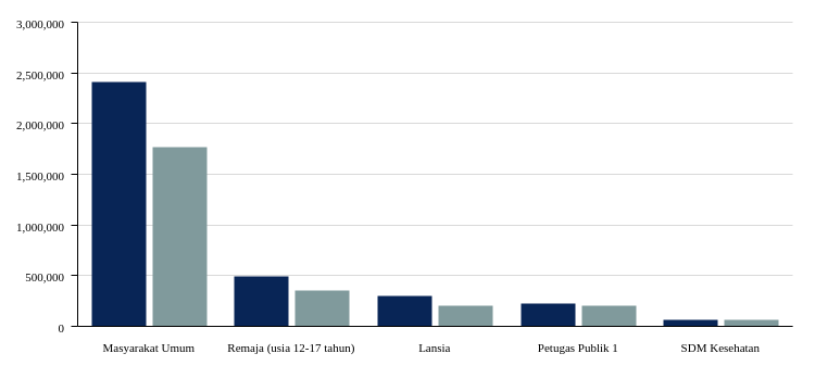 Vaksinasi ke masyarakat umum yang rentan ditargetkan sebanyak 2,58 juta jiwa. Pada dosis 1, vaksinasi dilaporkan telah diberikan sebanyak 2,41 juta jiwa (93,59 persen target). Sedangkan untuk vaksinasi dosis 2 baru tercapai 68,68 persen atau 1,77 juta jiwa.