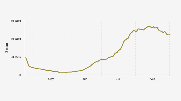 Kasus aktif Covid-19 di Indonesia hari ini turun. Berdasarkan laporan Satgas Penanganan Covid-19, jumlah kasus aktif Covid-19 di Indonesia kini ada 44.434 kasus aktif per Kamis, 01 September 2022.