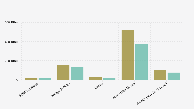 Vaksinasi ke petugas publik dengan target 289,92 ribu jiwa. Vaksinasi dosis 1 dilaporkan telah mencapai 155,23 ribu jiwa (53,54 persen target) dan dosis 2 dengan capaian 46,27 persen atau berhasil tersalurkan sebanyak 134,15 ribu jiwa.
