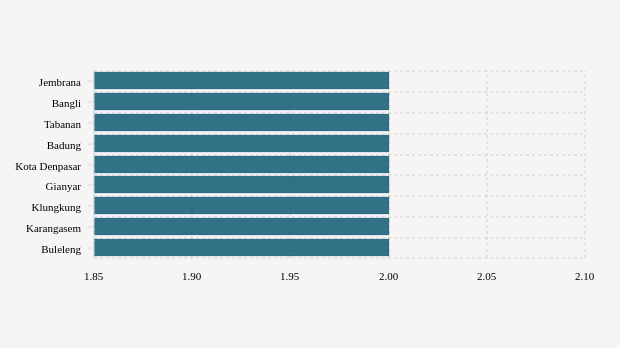 Urutan selanjutnya ditempati Bangli dan Tabanan yang masing-masing dengan catatan positivity rate aglomerasi tujuh hari terakhir sebesar 2,01 persen dan 2,01 persen