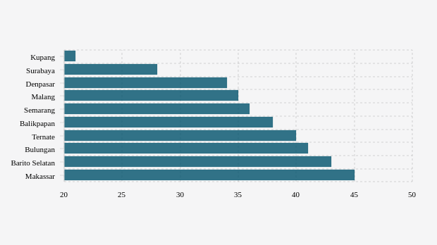 Kabupaten Kupang, Nusa Tenggara Timur, tercatat sebagai kota dengan kualitas udara paling bersih di Indonesia.
