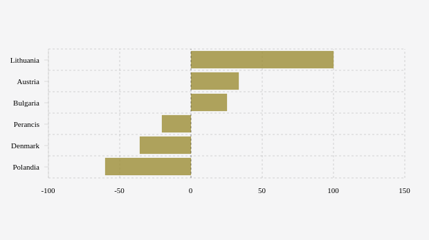 Selanjutnya, Bulgaria dengan kematian 10 jiwa (naik 25%), kematian di Perancis turun 20,56% dan kematian di Denmark turun 35,71%.
